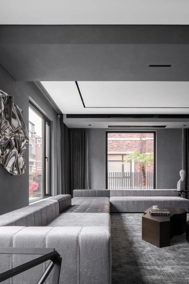 起居室簡潔明快,一組沙發+茶幾搭配,簡單實用,空間更加寬松。微水泥空白設計與灰白搭配,使空間更加可能。